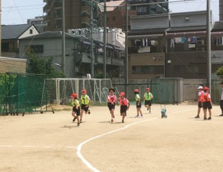 ・4年生がリレーをしました。走りながらタイミングよくバトンの受け渡しをすることを目標に取り組んでいます。走りながらのバトンパスが難しく、リレーゾーンを越えてしまうグループもありました。暑い中、しっかりと走っていました。