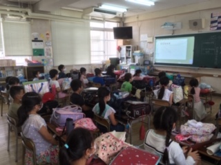 その後、3・5年生代表児童が1学期を振り返った作文をビデオで発表しました。