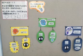 猛暑日が続いています。保健室前の掲示板には、夏休み中の過ごし方についての掲示があります。