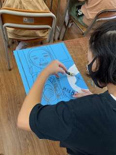 2学期の最初の図工は、版画です!『楽器を演奏する自分』を写真を見ながら下書きをして、彫刻刀で彫っていきます!どんな作品が出来るかたのしみです!!