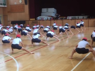 4年生は講堂で南中ソーランを練習しました。3年生での経験を生かしてできていました。