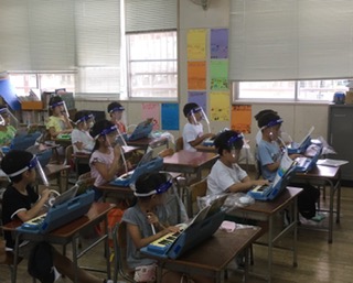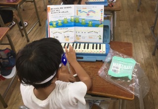 ・2年生が音楽で音の高さに気をつけながら鍵盤ハーモニカで追いかけっこをしました。かえるのがっしょうを指遣いに気をつけて、鍵盤ハーモニカで演奏できました。