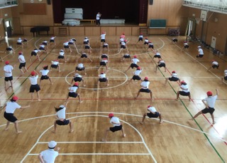 ・4年生が運動会の団体演技を練習しました。昨年度の運動会で行った南中ソーランを今年も行います。今年は3年生のお手本になれるように、がんばっています。みんなの振りがそろってきています。