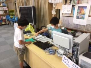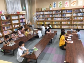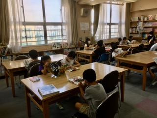 昼休みは図書委員の児童が担当して、図書館を開放しています。図書委員の児童が図書の貸し出しや返却の仕事をしてくれます。読書に楽しく親しむことができています。