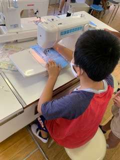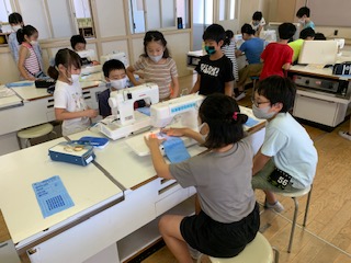 2学期からミシンの使い方を勉強し、今日は練習布をつかって、実際にミシンで縫ってみました!