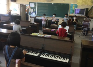 ・3年生が、音楽『ゆかいな木きん』をしました。それぞれのパートのリズムの特徴を感じとりながら拍にのって演奏することが、めあてです。みんな、友だちの演奏の音を聴いて、演奏できていました。