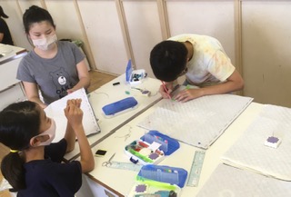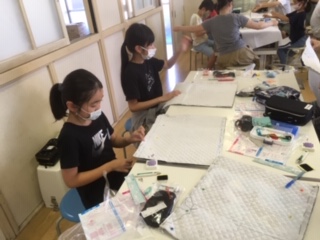・5年生が家庭科でナップザックを作っています。今日はしつけをしました。次はいよいよミシンで縫っていきます。