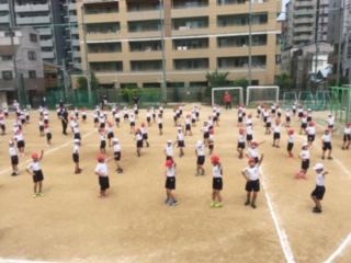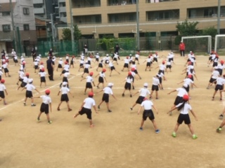 ・1、2年生が運動会でする団体演技のダンスを練習しました。これまでは学年で練習していましたが、初めて合同で練習しました。ダンスの振り付けを覚え、楽しく踊る姿が見られました。