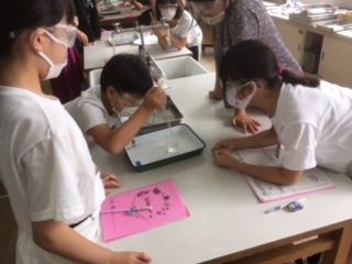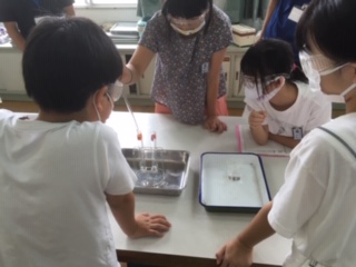 ・6年生が理科の実験をしました。金属に薄い塩酸を加えたときの変化を調べました。