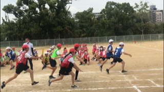 渡し手と受け手の走力を考慮して、スタートダッシュのタイミングを決めていきます。繰り返し練習した後、実際の大きさのコース使ったリレーをして、スムーズなバトンパスになってきました。本番が楽しみです。