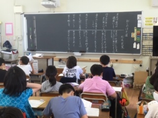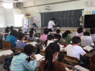 ・10月になりました。今日は中秋の名月です。満月に近い月をながめてほしいと思います。昔の人も同じ月をながめていたと思いをはせて、5年生が古文『奥の細道』を学習しました。古文のでリズムを感じながら暗唱しました。