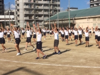 ・5、6年生が天王寺中学校で、団体演技のダンスと一人技の練習をしました。今日は動きが大きく、リズミカルに踊ることができました。本番が楽しみです。