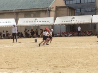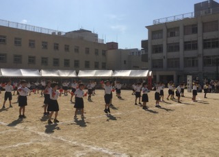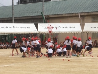 ・かけっこ、紅白玉入れ、団体演技『とびだせ!みんなでポンポコリン』です。