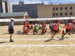 ・短距離走、紅白対抗リレー、団体演技『We can do it !』です。