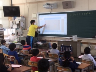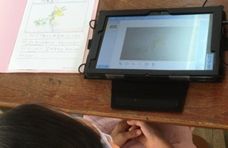 ・2年生がICT支援員さんと一緒に発表ノートを作りました。タブレット端末に取り入れた観察記録をトリミングして発表ノートを作りました。楽しく学習できました。