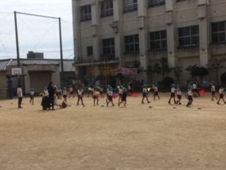 ・大江幼稚園のみなさんが、運動会の練習をしています。一生懸命に頑張っている姿を見て、元気をもらいました。