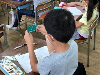 折り紙を折ったり、三角定規で直角を確かめながら学習しました。
