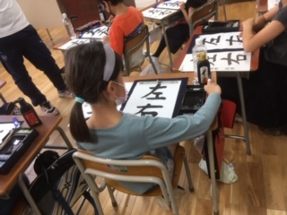・4年生が書写の学習をしました。筆順と字形に気をつけて、『左右』を書きました。