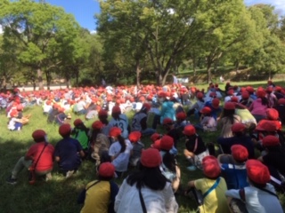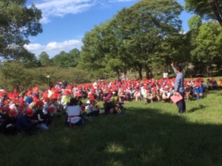 秋晴れのさわやかな気候の中、鶴見緑地公園に着きました。いよいよ出発です。