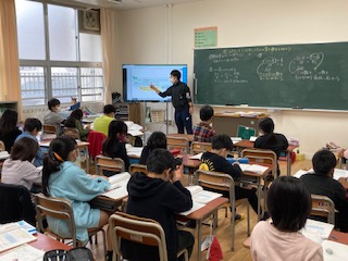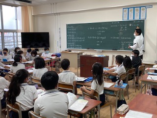 ・4年生が算数で、交換、分配、結合のきまりを使って、ひとつの式にまとめる学習をしました。