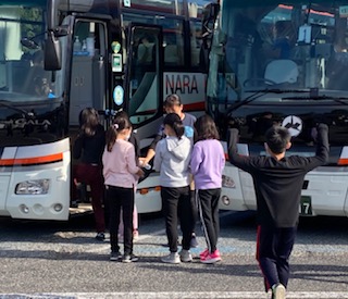 赤松SAで休憩をしました。バスに乗る時は手指消毒をしました。