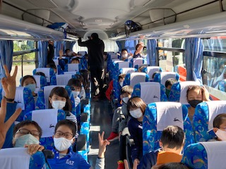 道の駅でトイレ休憩をしました。あと1時間ほどでハチ高原に着きます。全員元気です。