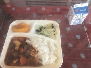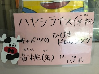 ハヤシライス、キャベツのひじきドレッシング、黄桃