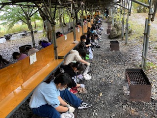 焼き板をしっかりと磨き、アクリル絵具でペイントしました。林間学習の良い思い出作りができました