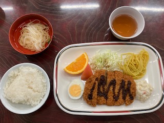 夕食はとんかつです。食事係の準備も早くなりました。今日も食欲があり、美味しく食べました.