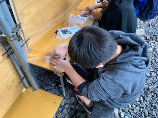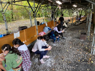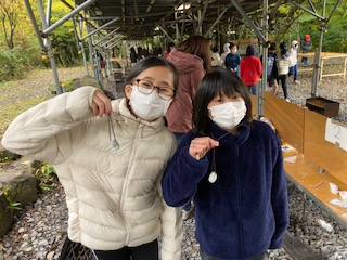 勾玉作りをしました。石を紙やすりで磨き、作りました。寒い中、子どもたちはがんばりました。