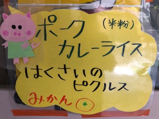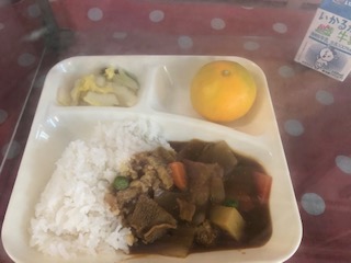 ポークカレーライス、はくさいのピクルス、みかん、牛乳