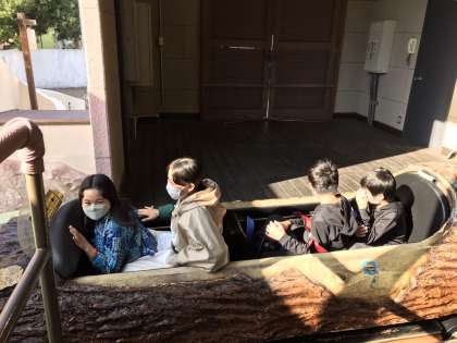 あと1時間ほどで集合となります。地域共通クーポンを使ってお土産を買った班もありました。子どもたちは協力して活動しています。