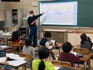 ・2年生では、生活科で『大江のなかよしまちたん〜まちはかせになろう〜』をしています。四天王寺の参道にあるお店を調べ、インタビューした内容をタブレット端末の発表ノートにまとめています。