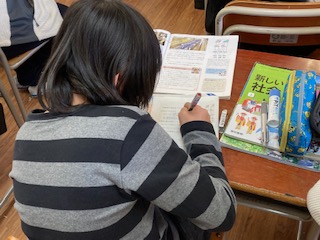 ・5年生が、社会科で自動車の部品を作る工場の学習をしました。今年は自動車工場の見学ができませんでしたので、ビデオをを見て学びました。ビデオを見た後は、ワークシートにまとめました。