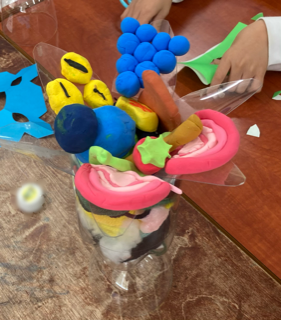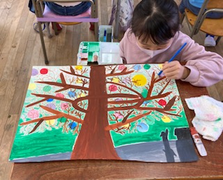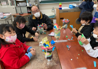 ・来週に迫った作品展に向けて、絵画や工作に取り組んでいます。1年生は毛糸や紙粘土を使ってパフェを作っています。3年生はモチモチの木の絵を描いています。できあがりが楽しみです。
