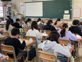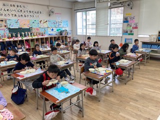 最近、新型コロナウイルスの感染者が増加傾向にあります。児童朝会で保健主事からあらためて登校した後の手洗い、換気についての話がありました。給食は変わらず、前を向いて静かに食べています。これから寒くなりますので、ご家庭でも感染防止に努めてください。