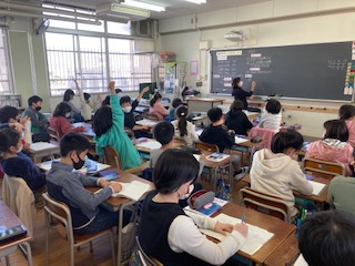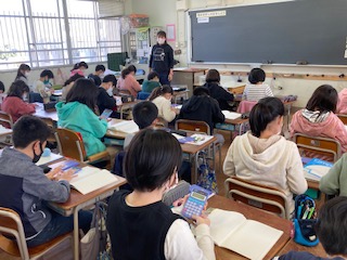 ・5年生が算数『単位量あたりの大きさ』の学習に入りました。今日は導入として、電卓早押し大会をしました。時間や回数をそろえると、比べることができることを楽しく学ぶことができました。