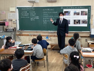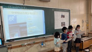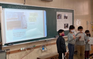 ・2年生が生活科『大江のなかよしまちたんけん〜まちはかせになろう〜を学習しました。大江小学校前の参道にあるお店を調べ、見学やインタビューしたことを発表しました。発表の際には、タブレット端末の発表ノートにまとめました。大江のまちを詳しく知ることができました。