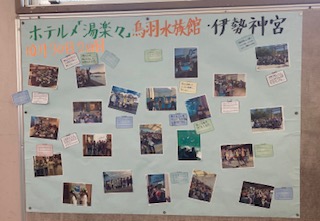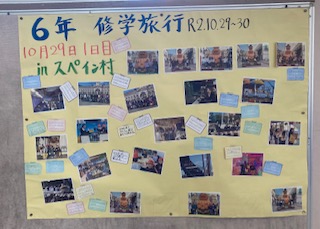 ・6年生の教室前には、修学旅行の記録写真や児童のコメントが記入された掲示物があります。あらためて修学旅行が実施できてよかったと思います。
