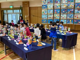 本日より作品展です。今日は児童が鑑賞します。お友だちや他の学年の作品を見て、学ぶことがたくさんあります。また、すごいとあこがれを抱いたり、自分も作ってみたい、描いてみたいと意欲を持ったりできます。