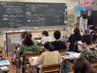 5年生が算数で『速さの求め方』を学習しました。求め方が時速、分速、秒速などがあり、時間を分になおしたら、分を秒にしたりと、なかなか難しい単元です。学習後は、問題集で理解の定着を図りました。