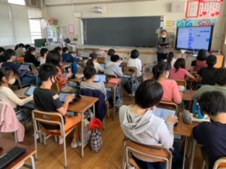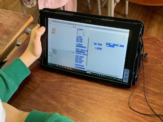 ネコのキャラクターをプログラムして動かします!しっかり話をきいて、上手に動かせていました。