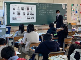 6年生が社会科『明治の国づくりを進めた人々』を学習しました。明治維新を進めた人々は、どのような思いをもっていたかを考えました。教科書や資料集を使って調べました。