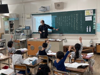 1年生が国語『おとうとねずみチロ』の学習をしています。チロの気持ちを想像して、声に出して読んでいます。家庭学習で音読の練習に取り組んでほしいです。