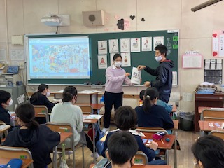6年生が外国語の学習で、ビンゴ形式にして職業名を英語で発言する学習をしました。