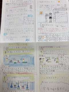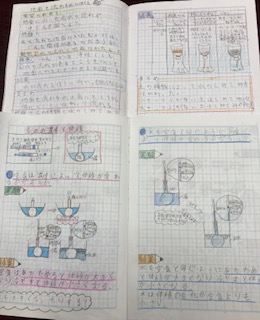 4年生が、理科や社会科でまとめノートを作る取組をしています。担任から『まとめノートチャンピオン』の発表があり、励みになっています。