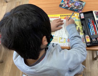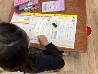 1年生が日本の風習のひとつである年賀状を書きました。年賀にふさわしい文や宛先の書き方などを学びました。