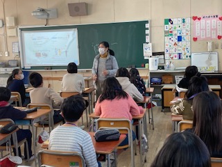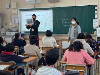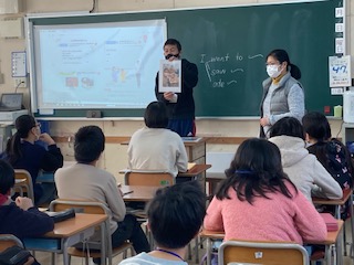 6年生がC−NETの先生と外国語の学習をしました。「行った」「見た」「食べた」の表現を使って、年末年始の様子を英語で発表しました。また、C−NETの先生からは写真を見せながら、年末の過ごした様子を英語で話してもらい、それを聞き取りました。