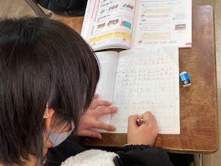 3年生が算数で□を使った式の学習をしました。子どもたちは自分の考えをノートに書いて、答えを求めました。