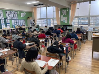 雪がちらついていますが、子どもたちは元気に登校しました。本日と明日は大阪市学力経年調査です。3年生から6年生が受けます。3年生は初めての学力経年調査ですので、緊張した顔で問題を解いていました。本日は国語と社会科、児童質問紙を実施します。